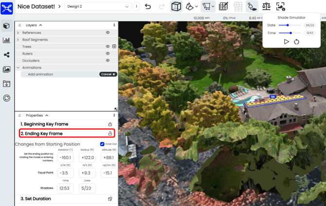 Choose the starting point by adjusting your view, time of day, and day of the year to capture the desired shading. You may also choose to ease in, which makes the When you have the right view, click on the lock icon.