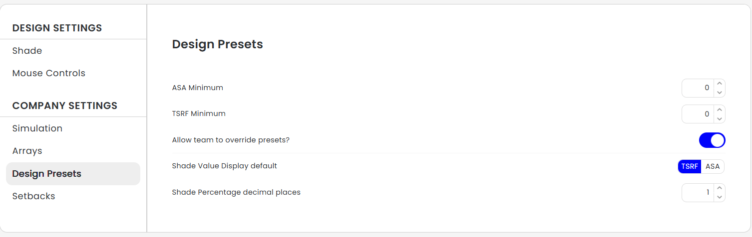 ASA/TSRF Minimum - This setting stops designers/salespeople from placing modules in areas that are below a certain efficiency threshold. More information in this article!