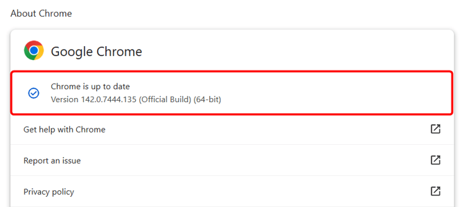- In Chrome Settings navigate to the "About Chrome" menu option all the way at the bottom of the list on the left