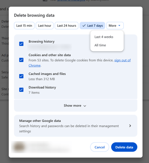 - A pop-up will appear. You can start with a recent time range (e.g., "Last 24 hours"), but the most effective way to get a complete refresh is to choose All time.